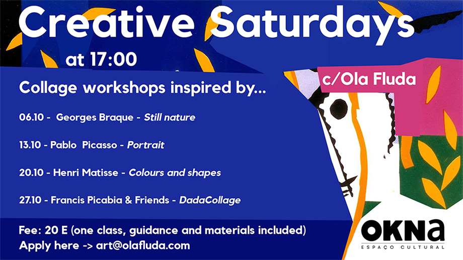 This workshop will give us the opportunity to work together and try to create unique stories. We will l connect different paper elements and paint to find new contexts of reality. Each participant will make a collage on canvas, or on paper, which can later be the perfect gift / wall decoration.